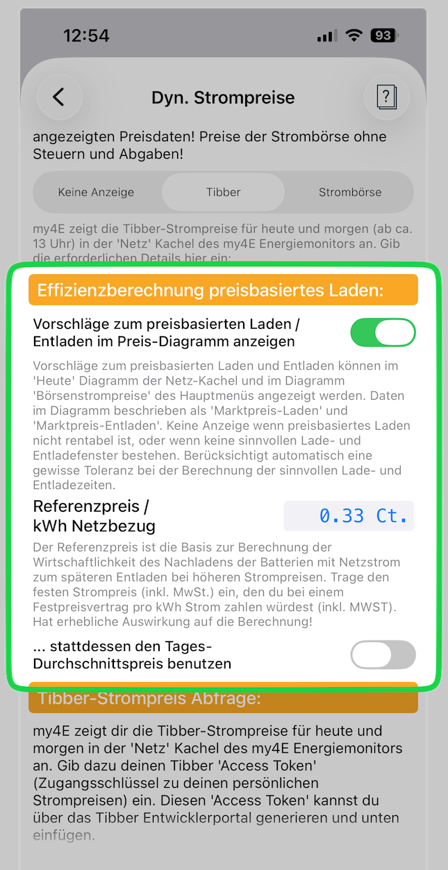 Nein. Die Berechnung läuft automatisch im Hintergrund, sobald Preisdaten verfügbar sind – du musst keine eigenen Werte eingeben mit Ausnahme von Strom-Referenzpreisen. Das kannst du in den my4E App-Einstellungen unter 'Dynamische Strompreise' machen.
